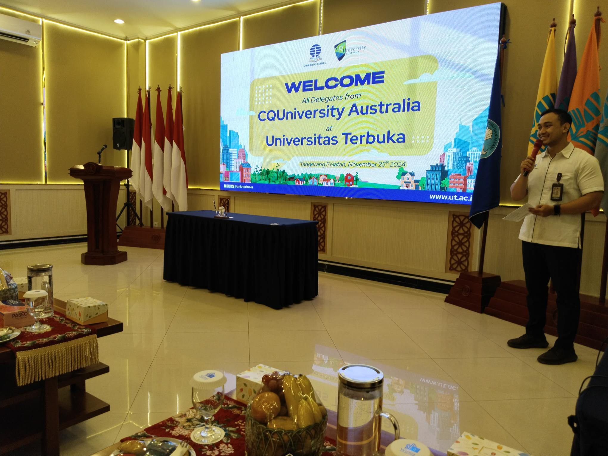Acara dimulai pukul 09.30 WIB dengan sesi pembukaan yang diikuti oleh penayangan company profile dari Universitas Terbuka dan Central Queensland University. Video profil ini memberikan gambaran tentang visi, misi, dan pencapaian dari kedua institusi dalam mendorong pendidikan berkualitas di tingkat global.